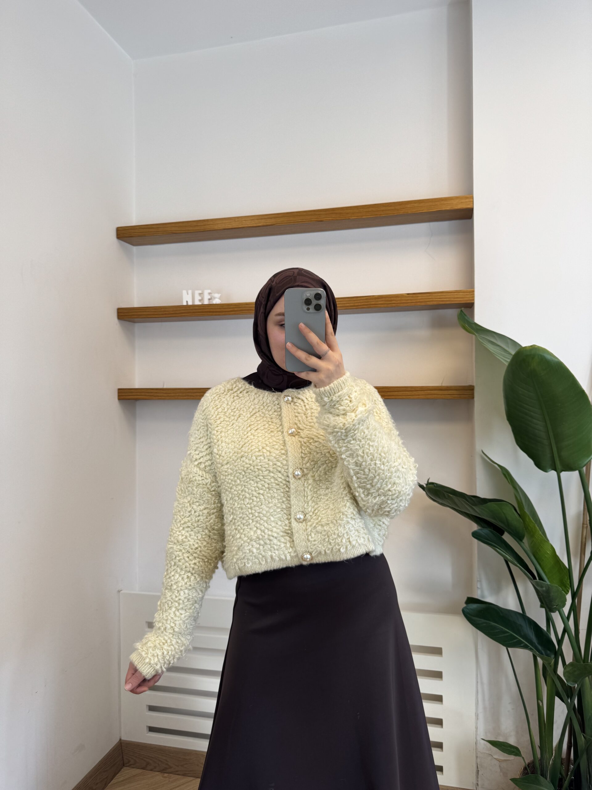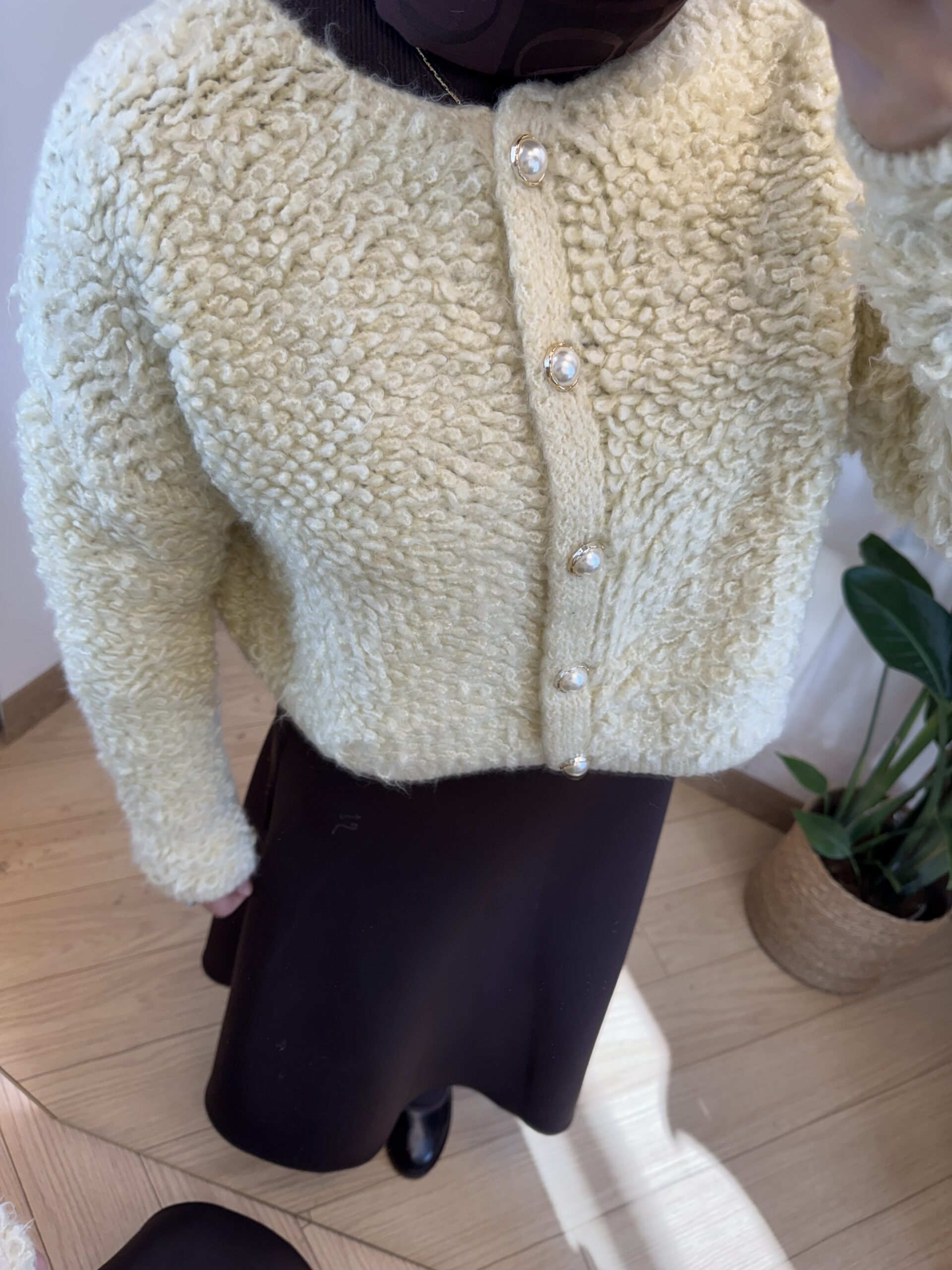 20.12.2025İnci Düğmeli Yünlü Hırka – Açık Sarı