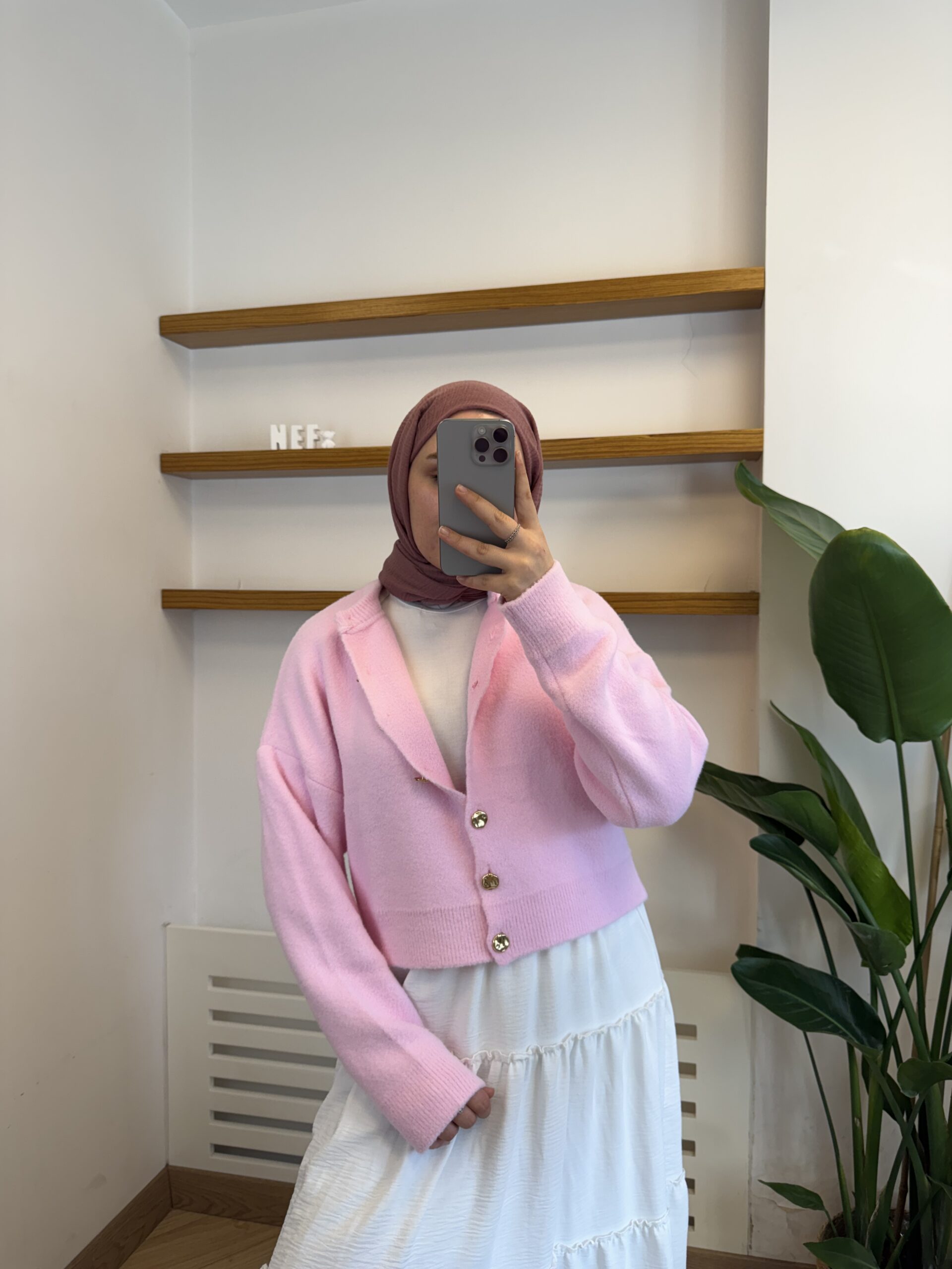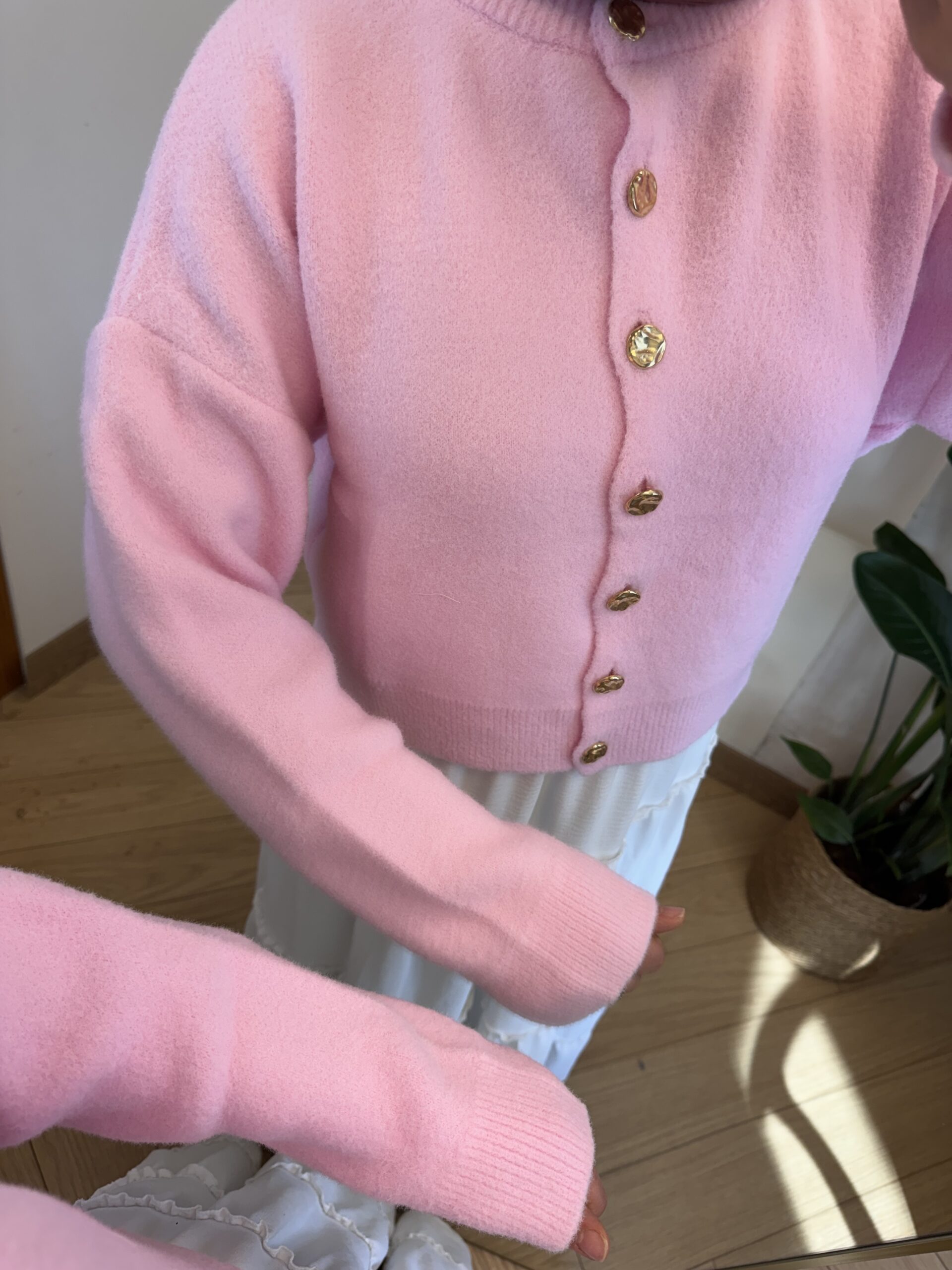 18.12.2025Peluş Dokulu Gold Düğmeli Kısa Hırka – Pembe