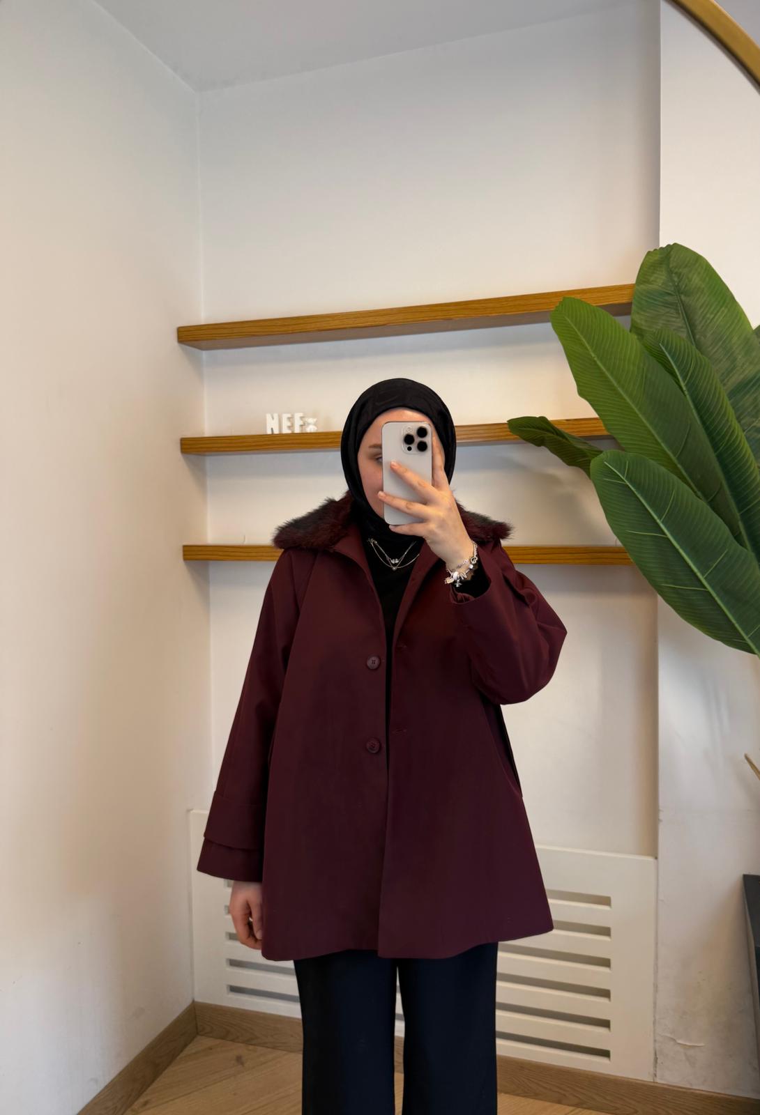 30.11.2025Premium Kürk Yakalı Trençkot – Bordo