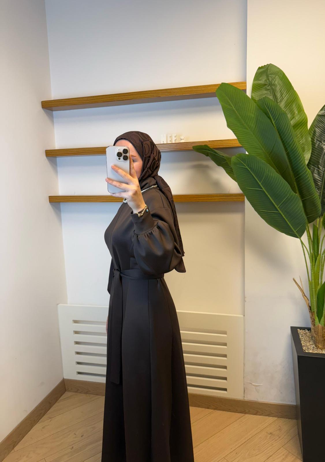 Premium sucuba kumaşın tok ve akışkan yapısı ile tasarlanan bu kuşaklı kahve elbise, zarif ve sade şıklığın en modern hâlini sunar. İç göstermeyen, formunu koruyan ve kusursuz bir dökümlülüğe sahip bu özel kumaş; günlük kullanımda da özel davetlerde de mükemmel bir duruş sağlar.